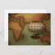 Airship Flying Over Eastern Hemisphere Map Custom Postcard