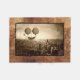 A Steampunk dual balloon airship drifts over the heart of Chicago. Sepia toned