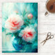 This floral tissue paper features an elegant watercolor arrangement in soft blush, ivory, and layered blue-green tones. The flowing brushstrokes and gentle contrast create a light, airy feel with a calm, painterly presence.