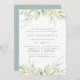 Elégante invitation botanique aquarelle pour le bat mitzvah de votre fille encadre votre cérémonie religieuse et les détails de la fête avec une bordure de feuillage vert pastel pur.