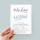 This baby shower invitation design features modern minimalist typography adorned with a simple gender neutral stem of pale blue green leaves. Use the design tools to add your baby shower party details or customize to suit your event.