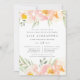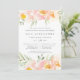Elegant watercolor floral invitation for your daughter's bat mitzvah frames your religious ceremony and party details with a border of sheer pastel watercolor flowers in light peach and blush pink, with mint green foliage.