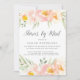 Can't get together in person? Host a virtual shower by mail. This elegant watercolor floral invitation for baby or bridal showers frames your virtual event details with a top and bottom border of sheer pastel watercolor flowers in light peach and blush pink, with mint green foliage.