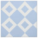 A cool geometric pattern of interlocking light blue and white diamond shapes. The white diamonds each contain a small baby blue diamond making pale blue the dominant colour of the fabric design.