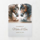Faire-part de mariage triplé spécial avec des chevaux! Une couverture unique pour les couples qui aiment les chevaux. Une fois ouvert, deux de vos photos souhaitées sont affichées avec vos détails mariages. Ajoutez deux photos. Cette faire-part de mariage est orientée vers la nature avec des couleurs de la terre. Ajoutez vos photos et changez le texte en fonction de vos besoins. Utilisez le modèle pour créer votre propre faire-part de mariage photo.