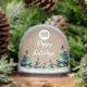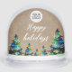 Rustic Ajouter Logo Texte Personnalisé Arbre de Noël Client Globe De Neige De Fête. Arrière - plan beige rustique et aquarelle coloré sapin de Noël. Insérez votre logo dans le modèle et customisez le texte, le nom de l'entreprise, l'adresse et les coordonnées à l'arrière. Promotion d'affaires ou don pour vos clients et partenaires d'affaires pour des vacances.