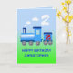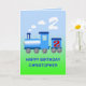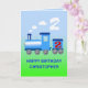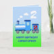 Un train bleu souffle sur des nuages de vapeur blanche. Ajoutez un nom à cette carte de deuxième anniversaire.