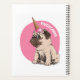 Photo Afishka | Shutterstock. ID image : 1170091624 | Adorable Carlin beige chiot dans un casquette de soirée crème glacée sur un arrière - plan rose. Pugicorn - citation.