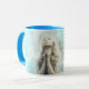 Belle fille bleue et rose priant tasse de café. Ajoutez vos prières, poèmes, citations ou messages favoris à cette tasse dans la zone de personnalisation.