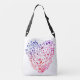 Coeurs colorés avec de petits coeurs et autres petits dessins mignons dedans. Coeur fait de petits dessins art Custom All-Over-Print Cross Body Sac.
