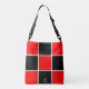 Monogrammed Red and Black Checker Board Sac fourre-tout Si vous avez déjà aimé jouer des dames. Ensuite, vous aimerez le design symbolique de la carte à chèques rouge et noir boulonné à l'avant et à l'arrière de ce sac fourre-tout zippé. C'est le cadeau parfait pour quiconque aime jouer à des jeux de société. Elle est ornée d'une motif carrée noire et rouge, bordée de rayures blanches. Le monogramme avant et centré sur cette création est composé d'un sceau circulaire rouge, noir et blanc avec une initiale rose pâle avec un nom imprimé en couleur noire. Ce sac fourre-tout monogrammé dispose également d'une bandoulière réglable en noir pour faciliter le transport.