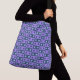 Grand Sac Crossbody dans une grille de carrés alternatifs, contenant chacun une forme irrégulière dans une teinte contrastée. Violet et bleu.