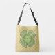 Ce trèfle classique à quatre feuilles chevauche un mandala en cercle concentrique avec des couches de tissages celtiques dans plusieurs tons de vert avec un peu d'orange pour l'accent. Ce sac est disponible en plusieurs tailles et à la fois les styles de sac sac fourre-tout et de sac de carrosserie.