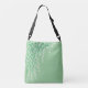 Élégant tout imprimé croix sur sac fait en vert clair, avec des graphiques de branches de saule blanc et vert foncé. Personnalisez le grand monogramme vert une lettre et le texte blanc pour vous-même ou comme un grand cadeau pour elle.