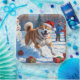 A heartwarming holiday illustration featuring a cheerful dog playing in the snow, wearing a Santa hat and surrounded by colourful gift boxes. In the background, children build a snowman beside a snow-covered Christmas tree, creating a joyful winter wonderland. Perfect for spreading holiday cheer and capturing the magic of Christmas.