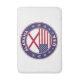 Badge of Alabama with flag of Alabama and flag of USA colours, rounded shape.