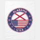 Badge of Alabama with flag of Alabama and flag of USA colours, rounded shape.