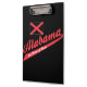 Alabama the Heart of Dixie makes a bold statement on this clipboard. Red text and huge emblem letter X