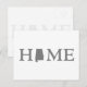 Featuring the word home in large bold capital lettering text font with the letter “O” replaced by the outline silhouette map shape of the Cotton state of Alabama with a solid grey background makes this Alabaman home state word art postcard a perfect way to keep in touch with anyone from Alabama.