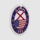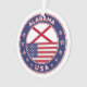 Badge of Alabama with flag of Alabama and flag of USA colours, rounded shape.