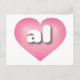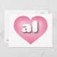 This postcard contains a cool pink heart with a white-washed centre containing the bold, white, rounded, lower case letters al, a playful abbreviation for Alabama, the Yellowhammer State. The reverse side of the postcard is blank, awaiting your customized text or handwritten sentiments.