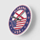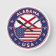 Badge of Alabama with flag of Alabama and flag of USA colours, rounded shape.