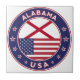 Badge of Alabama with flag of Alabama and flag of USA colours, rounded shape.