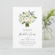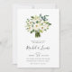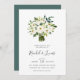 Elegant floral wedding invitations feature a bouquet of watercolor white roses and peonies with lush green botanical foliage and leaves. Personalize with your wedding details beneath in a chic mix of block, serif and handwritten calligraphy typefaces.