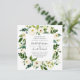 Our Alabaster floral wedding invitation in a unique square format frames your wedding details with painted watercolor botanical greenery and white rose and peony flowers. A modern yet organic choice for spring, summer or winter weddings featuring fresh green foliage, lush florals and handwritten lettering.