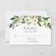 Designed to coordinate with our Alabaster wedding collection, this fresh green and white botanical RSVP card features a spray of watercolor greenery and white florals topping your desired response date and custom accept and decline wording.