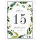Garden chic table number cards feature an oval wreath border of green watercolor foliage and white rose and peony flowers, framing your table number in rich off-black. Personalize with your names and wedding date, or name each table for an extra personal touch. Design repeats on reverse side. Coordinates with our Alabaster floral wedding invitation suite.