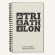 Notebook with bold graphical design splitting the word "TRIATHLON" into three components aligned alongside recognizable icons representing the three events - SWIM, BIKE, RUN. Design available in a curated collection of rich modern colours. Perfect training journal, nutrition log, planning tool, motivation notes, etc.