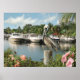 The amazing Brown Pelican stands watch over this boat-filled tropical "Pelican Cove", a sun-filled scene by artist Alan Giana.