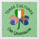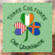 The Åland Islands, Ireland and United States of America flags are found in this shamrock. Shamrock was designed to celebrate St. Patrick's Day, 4th of July, and Ålander holidays. Above the words THREE CULTURES show in dark green, circular, Celtic style letters. Below, in the same lettering, the words ONE YOURNAME. Add your name in the appropriate spot for to personalize. For a custom gift, add someone else's name. The background is is light green squiggly squares.