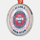 Show your state pride this holiday season with this unique Christmas ornament dedicated to Alaska, the 49th state. It has red, white, and blue patriotic colours with a circular typography design on a white background. The text includes facts about the state, such as its name, capital, state abbreviation, region, time zone, geographic coordinates, the year of its statehood, and its resident's name. It's a great gift for those who wish to celebrate their state or for those who are feeling nostalgic about their home state.