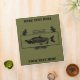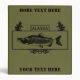 Based on a common military award the Combat Fisherman Badge commemorates surviving combat fishing in Alaska. It features a Sockeye Salmon, in spawning red coloration, on a dark blue background, over a conifer branch wreath. Text reading "ALASKA" is located at the top of the image. There are two places on the front for you to customize by adding your own additional text and another on the spine.