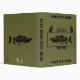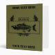 Based on a common military award the Combat Fisherman Badge commemorates surviving combat fishing in Alaska. It features a Sockeye Salmon, in spawning red coloration, on a dark blue background, over a conifer branch wreath. Text reading "ALASKA" is located at the top of the image. There are two places on the front for you to customize by adding your own additional text and another on the spine.