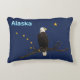 A Bald Eagle scans the sky from his perch on a tree branch; superimposed on a flag of Alaska. Text reading "Alaska" also appears in glowing blue and white. Add additional text on the reverse side.