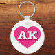 This keychain features a vibrant, hot pink heart containing the bold, white, upper case letters AK, the official abbreviation for Alaska, the last frontier.