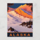 Alaska poster. Mountains covered with snow. Travel postcard in vibrant colours.