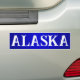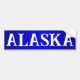 Alaska bumper sticker in blue and white.