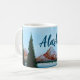 The vast Alaskan Wilderness outdoor scene with wording centred above a waterway in between pine trees with a mountainous background by artist Jason Girard. Have you seen Alaska or know someone who has this is for them.