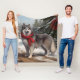 Alaskan Malamute Dog in Snow Christmas Fleece Blanket