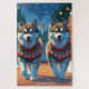 This festive design captures the joyful spirit of the holiday season, featuring an adorable dogs.Nestled in a winter wonderland, complete with a decorated Christmas tree, and beautifully wrapped presents. Snowflakes gently fall, adding a magical touch to the scene, while the vibrant colours of the holiday decorations create a warm and cheerful atmosphere.