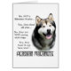 A comical way to tell folks that your dog is an Alaskan Malamute. This dog design lists the answers to some of the most common questions you are always asked about your favourite breed of dog. If you would like another dog breed featured in this design, please email us at greywolfcreation@yahoo.com.