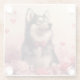 Alaskan Malamute with Roses - Valentine's Day Glass Coaster