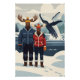 Funny Alaskan whale watching photobomb poster, featuring a pair of anthropomorphic moose being photobombed by an Alaskan humpback whale, maybe in Juneau, Alaska. This Alsakan-themed poster is styled in the iconic style of the 1930s WPA American national parks posters.