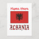 Postcard on back for your personalized message. The front features the Albanian Flag with the word ALBANIA written below, in the colours of the flag. On top is a place for a name in red letters, to make a cool card. Great for holiday notes or anytime.