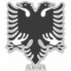 Albania National Coat Of Arms Patriotic Sticker with the depiction of the Albania Coat of Arms. Below the coat of arms is the inscription "Albania" done in beautiful "Aceserif" font and the black colour. Inscription is on the bottom infused with the coat of arms but it can be freely moved or even deleted if you wish for a bit different design. Albania coat of arms sticker is a fantastic gift and interesting present for any occasion.