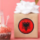 Very pleasant design showing the double-headed eagle of Albania (Shqipëria) within a circle shape made of the national colours.